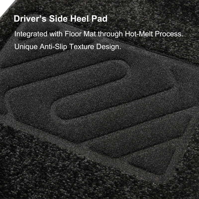 - Multilayer Structure: The rugs feature an impressive 0.6-in thickness, and made of three layers combined by hot press technology. The first layer of premium plush carpet helps reduce interior car noise and delivers outstanding comfort and support; Second layer is TPE, allowing it can be flame retardant and waterproof; Backing layer is original “Friction Claws” material, by increasing the friction on backing with car floor, keeps mats from moving without damaging floors.