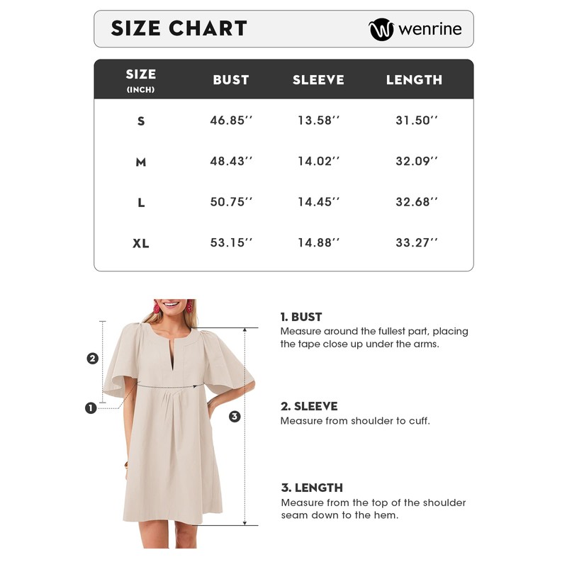 - The Wenrine womens flutter sleeve mini dress features an loose fit, allowing for a relaxed and comfortable feel. The loose and flowy silhouette not only provides freedom of movement but also adds a trendy and effortless touch to your overall look. Whether you're running errands or enjoying a summer day out, this dress will keep you comfortable and stylish.