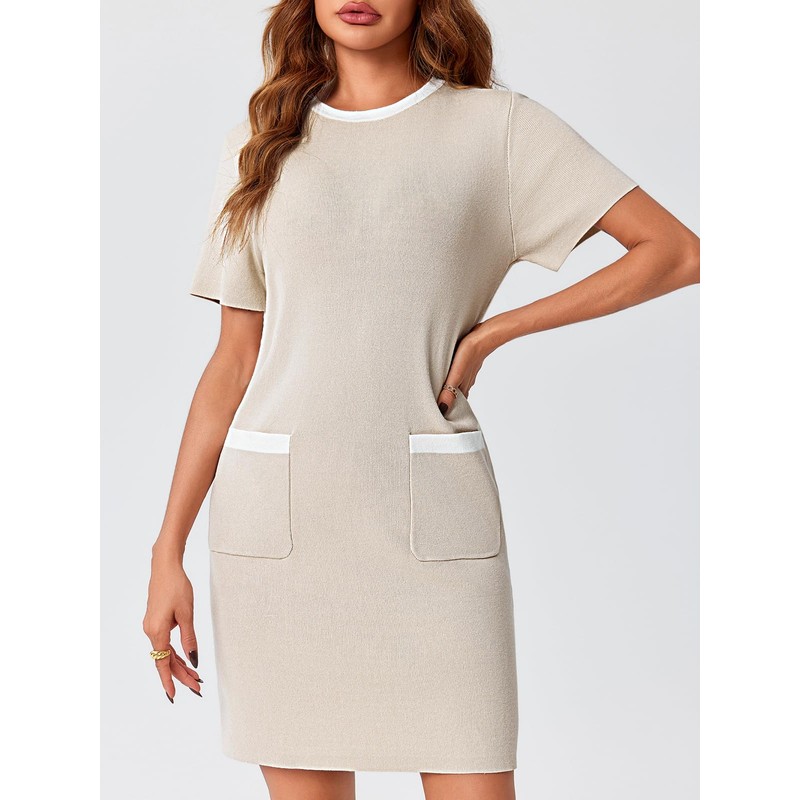 Wenrine Womens Work Dress Elegant Business Casual Short Sleeve Knit Summer Mini Dresses Khaki