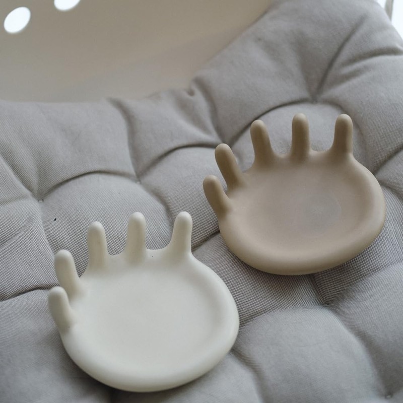 - UNIQUE DESIGN:The alluring Ceramic Jewellery Ring Five-Finger Tray is meticulously designed in the shape of five fingers, offering each ring its own designated spot, thus preventing any unintended collisions or entanglements. This tray isn't just for showcasing and safeguarding rings; it also serves as a perfect repository for small jewellery items such as earrings, necklaces, or brooches. Placed in the bathroom, it takes on the additional role of a convenient soap dish. Now, you can confidently place your rings on the tray before washing your hands, sparing any worries of losing them.It's a great gift to give to your girlfriend, mother, sister.