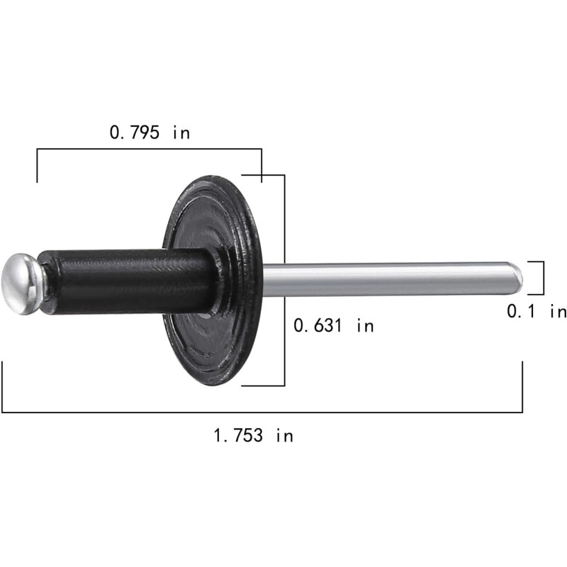 Wensilon(150 pcs) 3/16 * 1/2" Large Cap Open End Black 3/16*1/2,