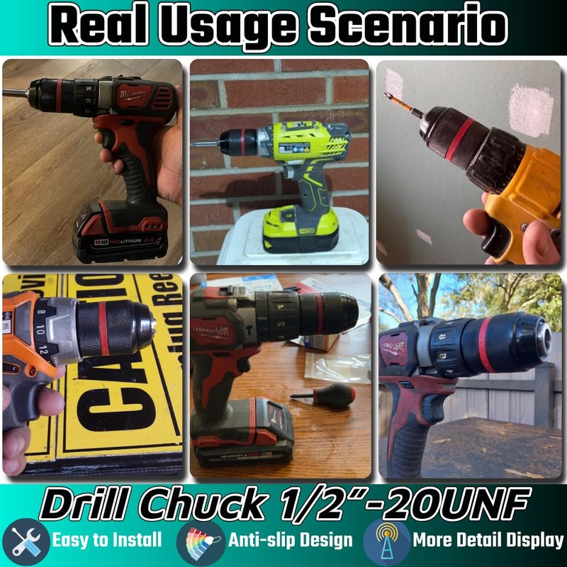 - 【Size】- Diameter 43mm/1.69in; Length 58mm/2.28in; Clamp Range 2 ~ 13mm / 0.04 ~ 0.51in. Large range of clamp size which range from 2~13mm. Connection Size 1/2 "-20UNF(1/2''=12.7mm),20 teeth per inch, and the spacing is 1.27mm,suitable for many kinds of drill bit.