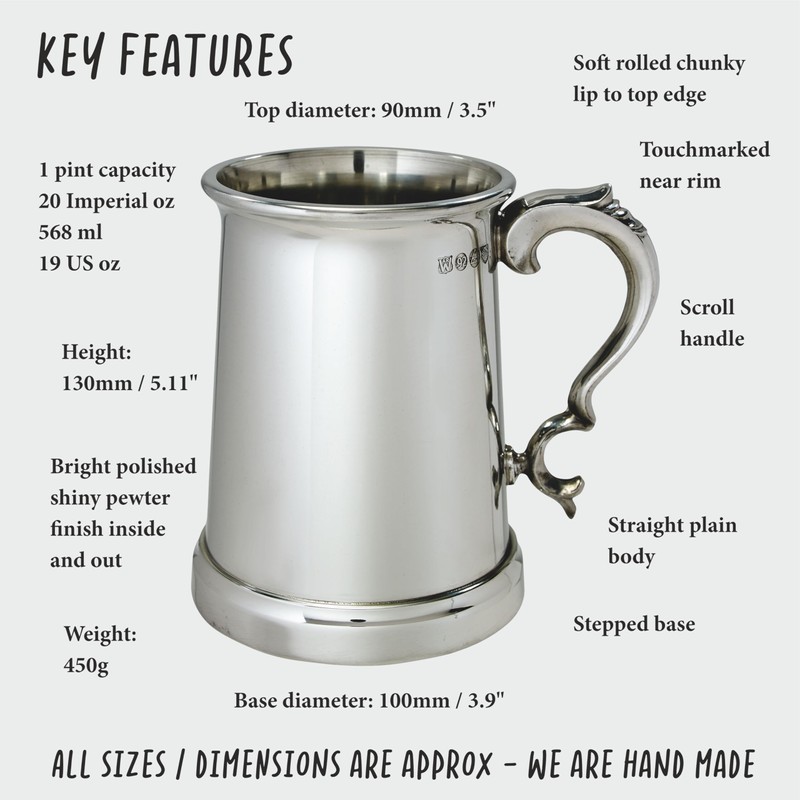 Wentworth Pewter - Vanguard A426ENG Heavyweight Pewter Tankard Engraved 1 Litre