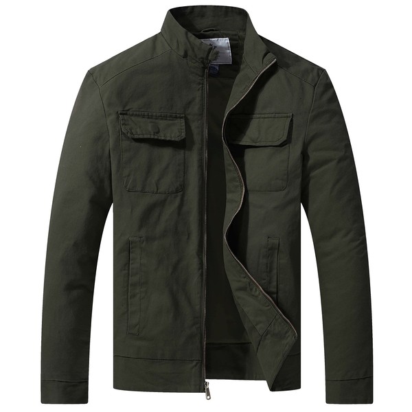WenVen Men's Twill Cotton Field Jacket Light Utility Work Wear (Army Green, M)
