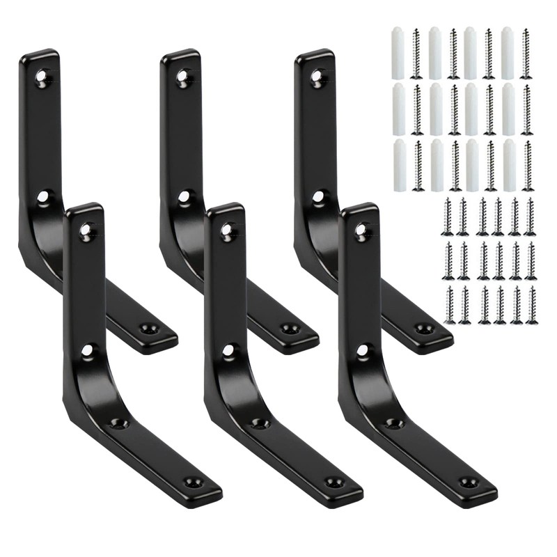- Package includes: you will receive 6 black shelf brackets and come with rubber plugs and screws. In combination with the L-shaped structure, good stability is ensured.