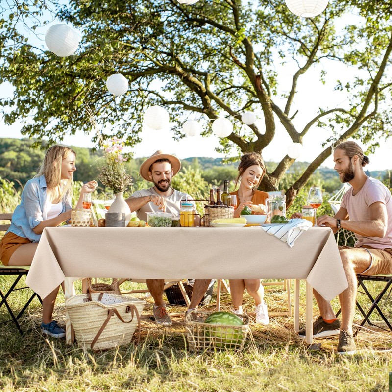WenYa PVC Table Cloth Wipe Clean Tablecloth Wipeable Plastic Tablecloths, Rectangular Waterproof Table Cover Protector for Picnic Party Outdoor Indoor - Beige, 71x54in/180x137cm