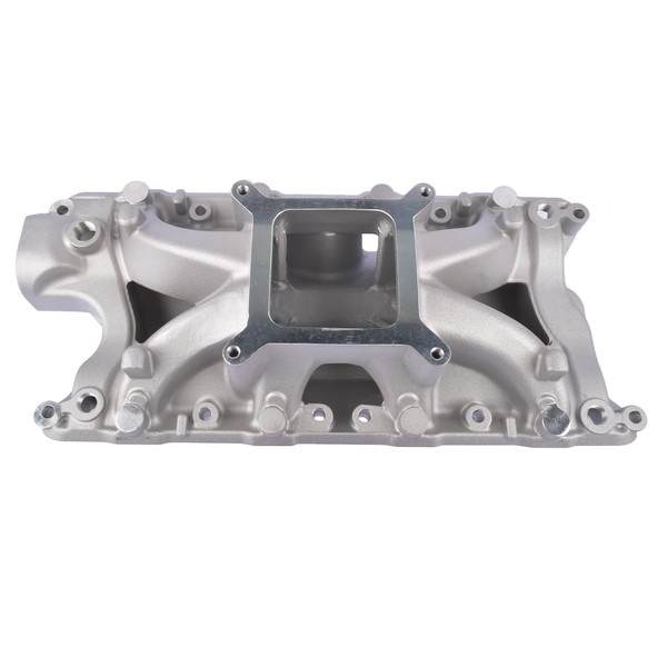 - ★【Product Specification】- Intake Material: Aluminum / Intake Style: Single plane / Carburetor Mounting: 4-barrel square bore / Basic Operating RPM Range: 3500-8000.
