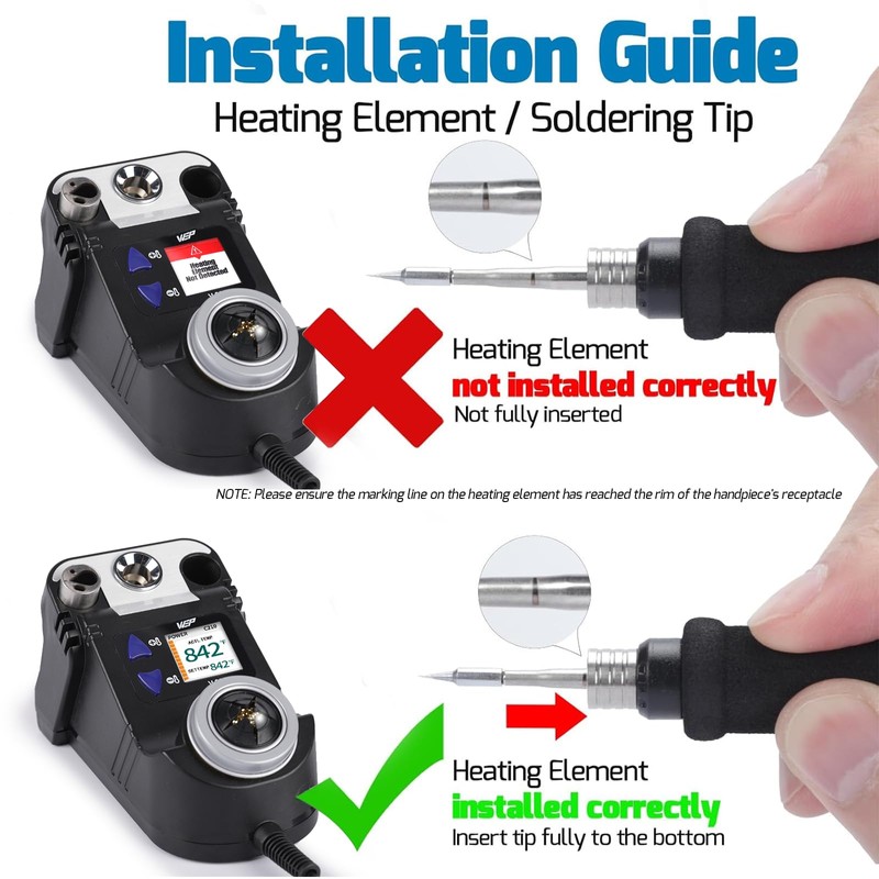 - Sleep Mode: when the micro soldering iron is inside the solder iron holder, it will enter the low-temperature sleep mode; reduce oxidation on the heating element and reduce unnecessary wear