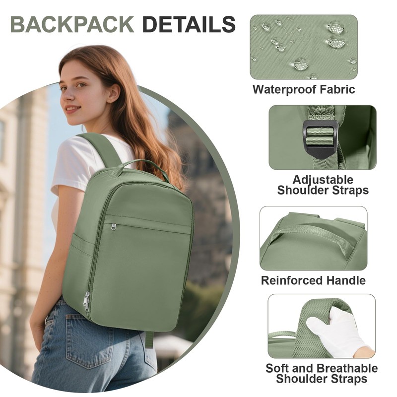 WEPLAN Cabin Bags for Ryanair 40x20x25 Underseat Travel Backpack for Women Men Carry on Hand Luggage Backpack Airplanes Casual Daypack Waterproof 14 inch Laptop Backpacks Cabin Size Work,Gray Green