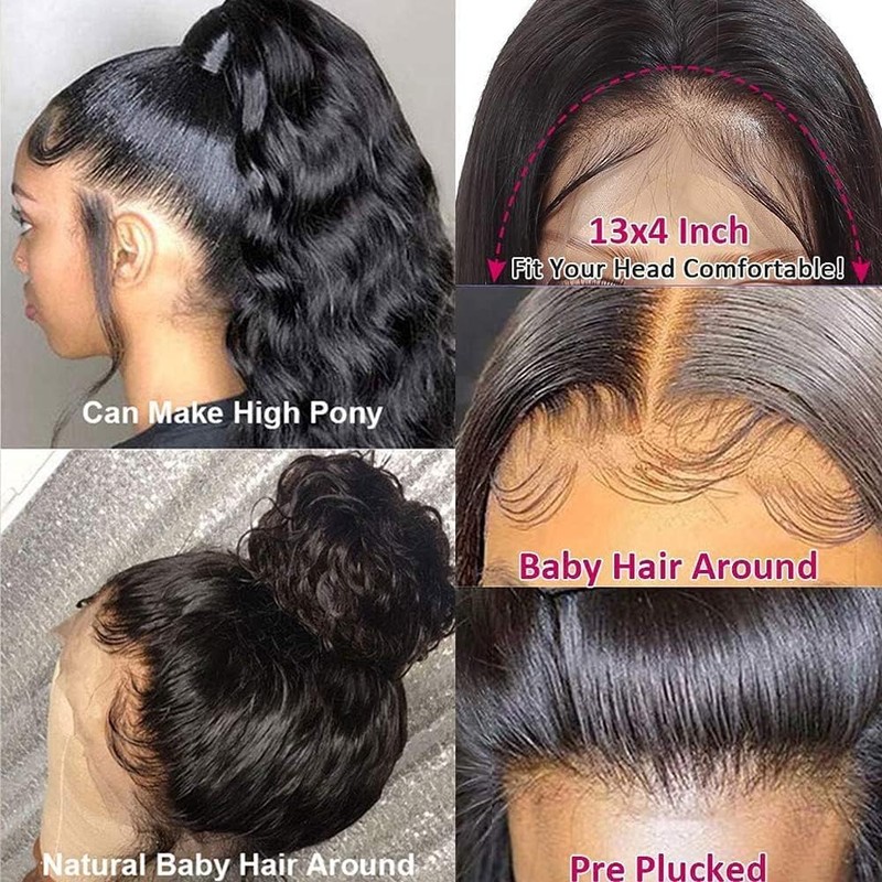 - Lace Front Wig Human Hair Quality: 180% density 13x4 lace front wigs human hair pre plucked with natural hairline. True to length & weight, no smell, no split ends, no shedding, tangle free. Body wave human hair wig can be straightened, curled, bleached, dyed, permed and styled as like your own hair.