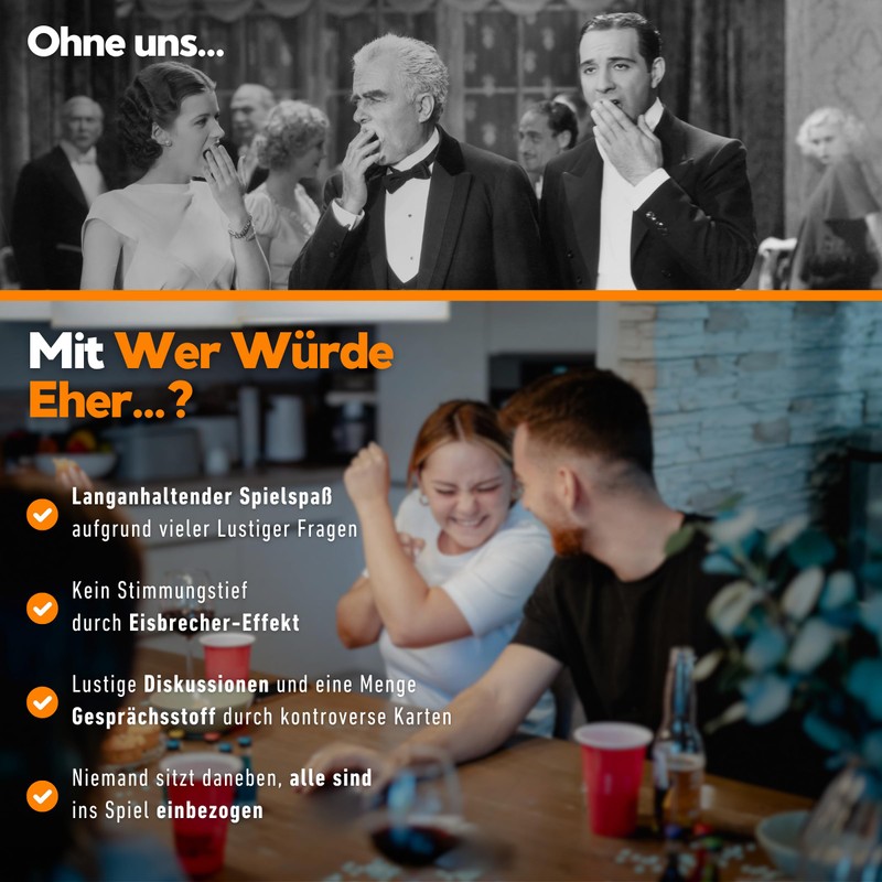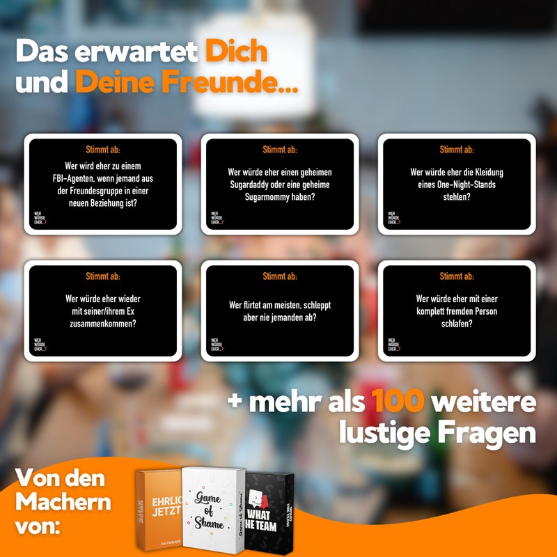 Wer Würde Eher...? The Classic Party Game for Your Party - Extra Many Playing Cards with Sharp and Intimate Questions - Reveal Your Secrets