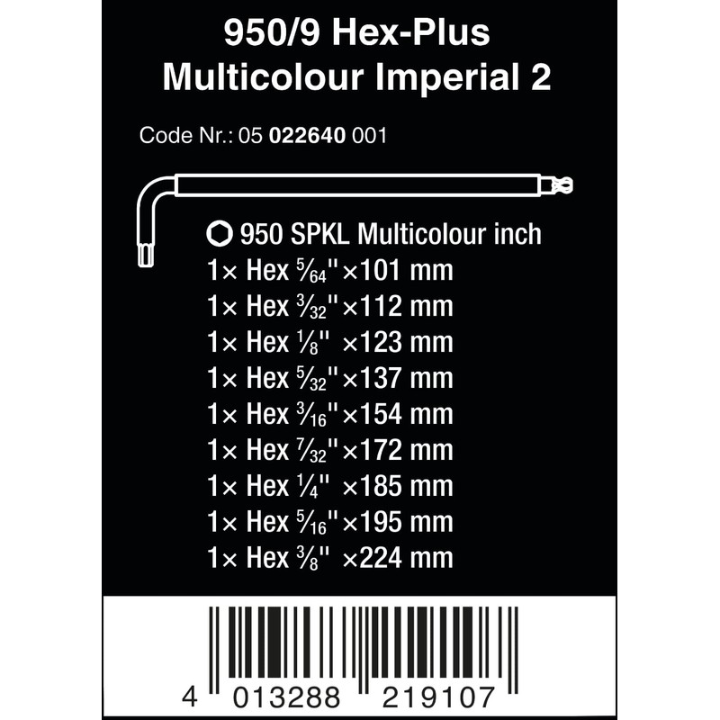 Wera 05022640001 950/9 Hex-Plus Multicolour Imperial 2 L-Key Set, Imperial, BlackLaser, 9 Pieces