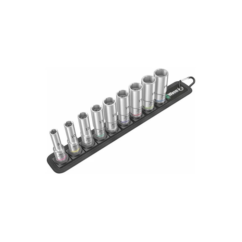 Wera Belt B 1 Zyklop Metric Deep Socket Set with Holding Function, 3/8″ Drive (9-Piece Set)