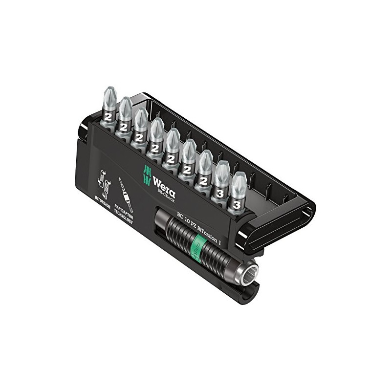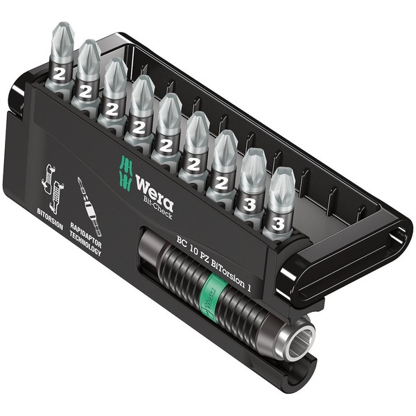 Wera Bit-Check 10 PZ BiTorsion 1 All Round Long Life Pozidriv Bit Set, for drill/drivers, 10pc, 05056368001