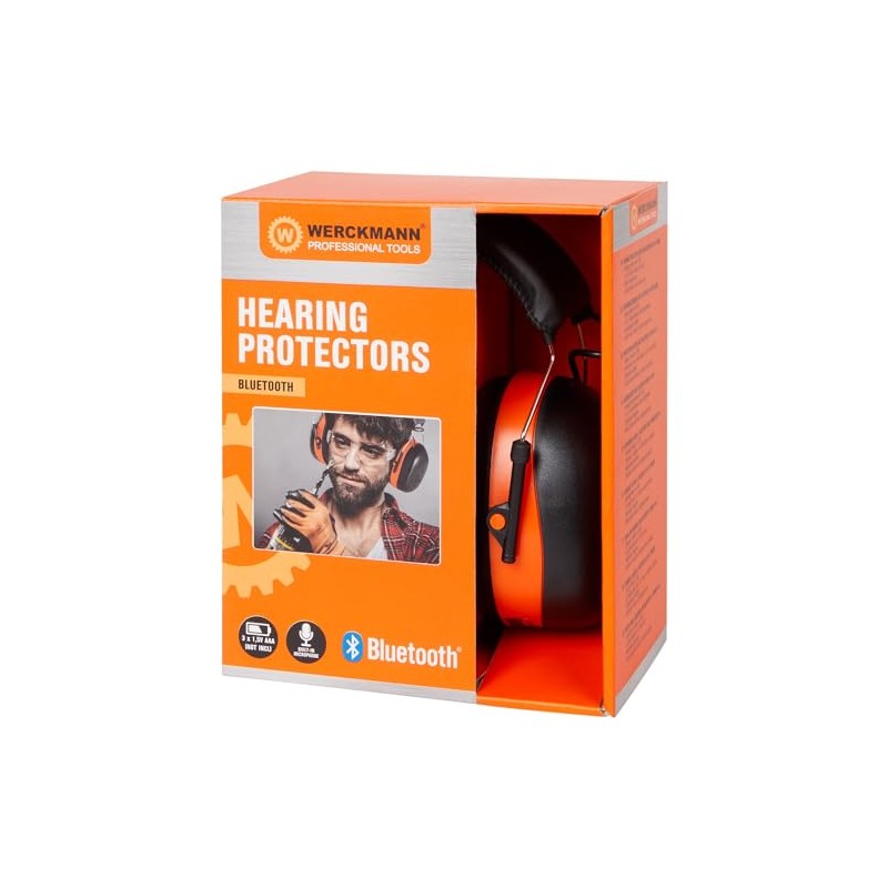Werckmann Hearing protection with integrated Bluetooth - this ear protection is adjustable, Black, orange