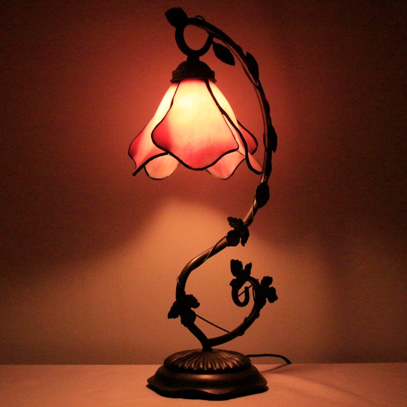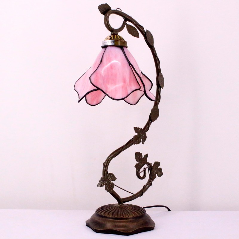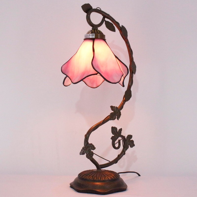 WERFACTORY WERFACTORY Tiffany Lamp Pink Stained Glass Table Lamp, Metal Leaf Table Desk Reading Light 8X10X21 Inches Decor Small Space Bedroom Home Office S701 Series