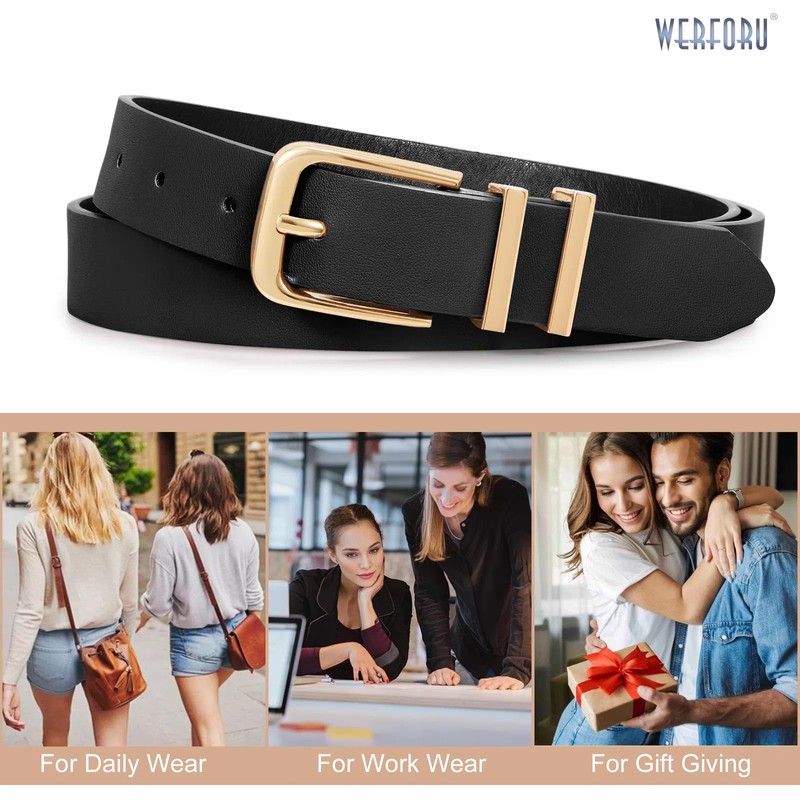 WERFORU 3 Pack Women's Leather Belts for Jeans Dresses Fashion Ladies Gold Buckle Leather Belts, Black/Brown/Coffee