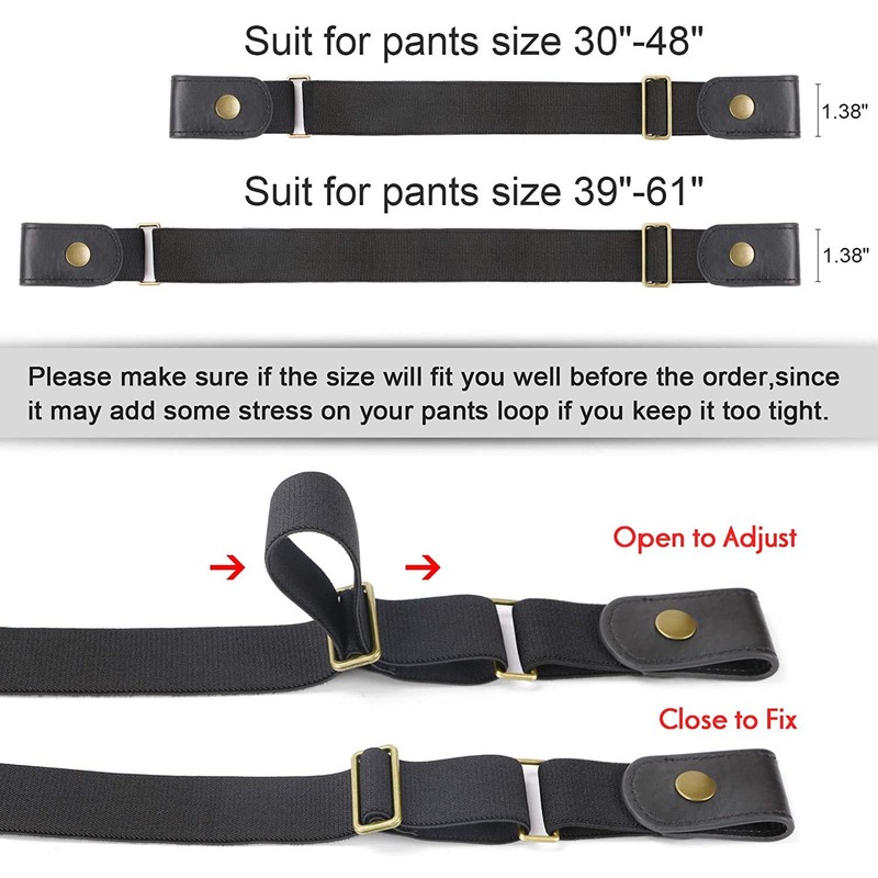- Adjustable Size - If you think the size of the waistband is too large or too small, just slide the metal rod to adjust it, and you will get the right size. The buckless stretch belt is suitable for all family members. There are two sizes to choose from: M: suitable for pants ranging from 30 to 48 inches, and L: suitable for pants ranging from 44 to 64 inches. Belt width: 1.38 inches.