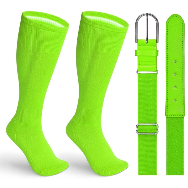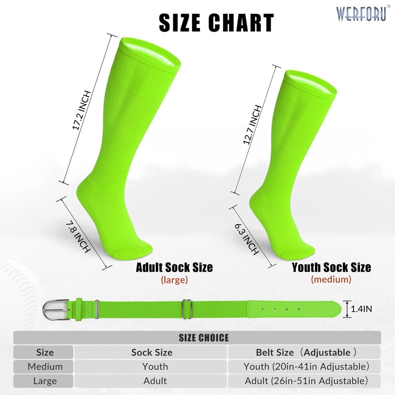 WERFORU Baseball Sock and Belt Combo Set Boys Baseball Belt and Sock Elastic Softball Sock and Belt for Adults and Youth(Bright Green,Medium)
