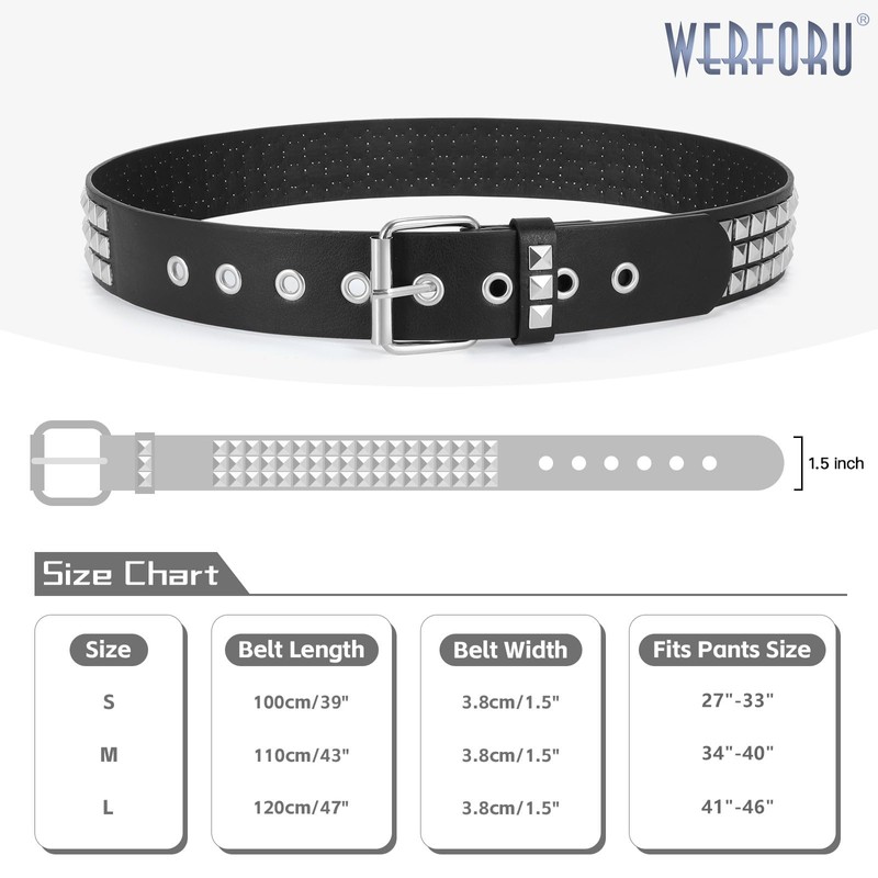 WERFORU Black Studded Punk Rock Rivet Belt for Women & Men - Gothic Belt for Jeans