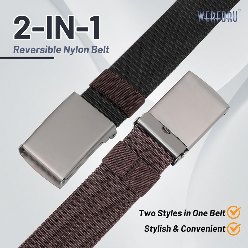 WERFORU Men Tactical Belt Nylon Belt for Men Golf Belt Reversible Belt with Flip-Top Metal Buckle Hiking Rigger Military Work-2-in-1 Belt (26"-32" Waist Adjustable,Black/Coffee)