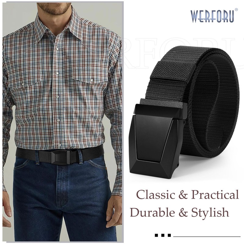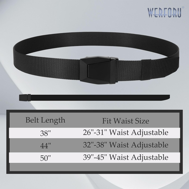 WERFORU Men Tactical Belt Nylon Belts for Men Military Belt for Men Nylon Web Belt with Metal Buckle Quick Release-Work Military Hiking(Black,39"-45" Waist Adjustable(Length 50")