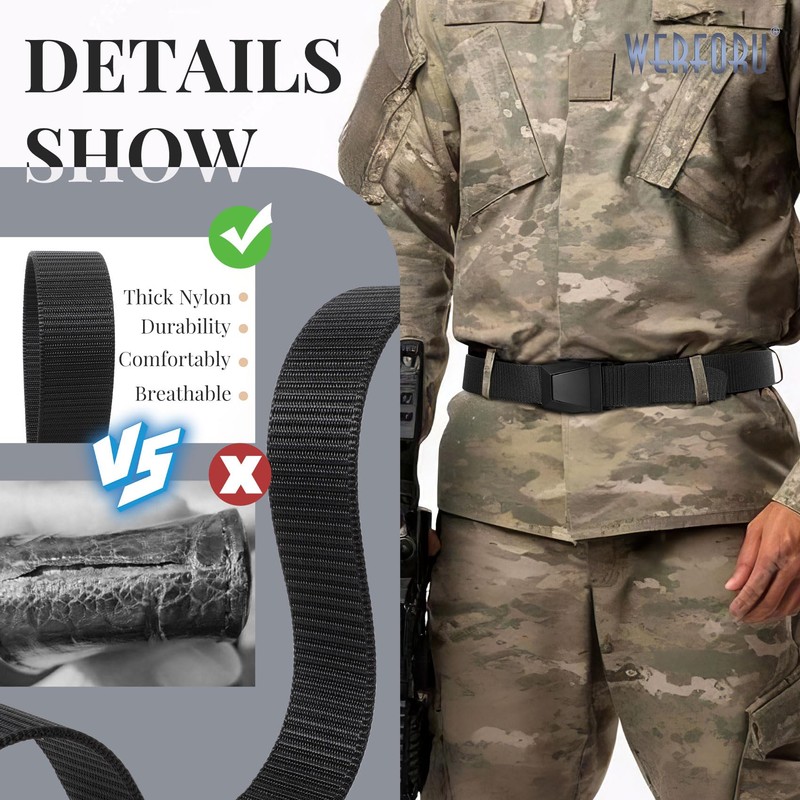- 【Applicability】: The tactical nylon belt is designed to provide you with stability, flexibility, efficiency and many other properties. Not only does the men nylon belt deliver on comfort, utility and durability, but it is also a belt that can be worn with a variety of outfits and for a variety of occasions. The military nylon belt is ideal for outdoor enthusiasts, military personnel, outdoor workers and emergency response teams among others.