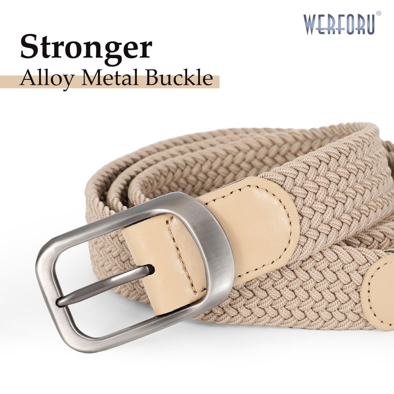 WERFORU Stretch Belts for Men Elastic Woven Braided Belt 1 3/8 Casual Golf Belt for Jeans Pants,Khaki,Fit size 36"-40"