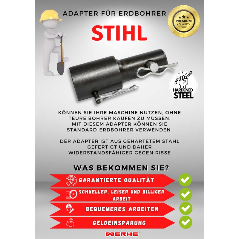 - 🌍Very handy - just use standard auger with your Stihl earth borer and save money