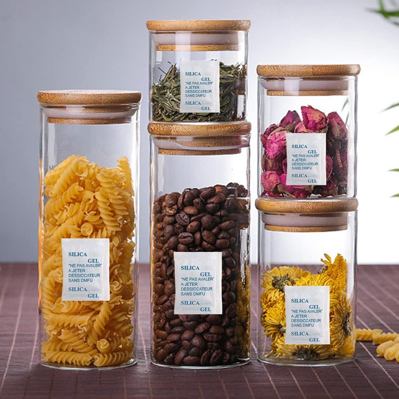 - KEEP YOUR FOOD FRESH AND DRY Silica gel bags with high absorption capacity can absorb moisture in your coffee beans, meat, cookies, bread, rice, nuts, snacks, chocolates, dried fruits, etc.
