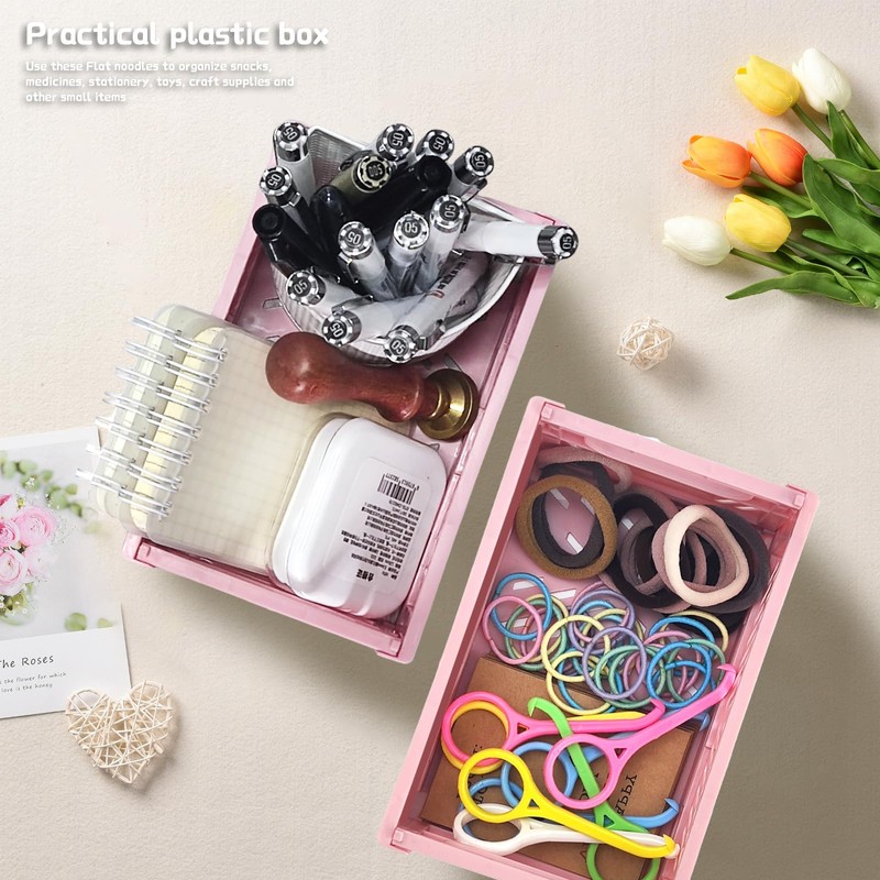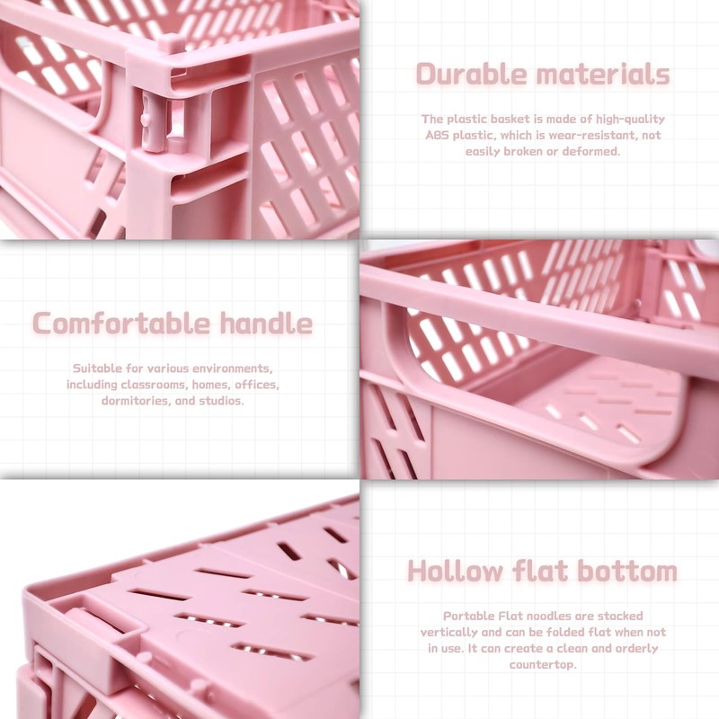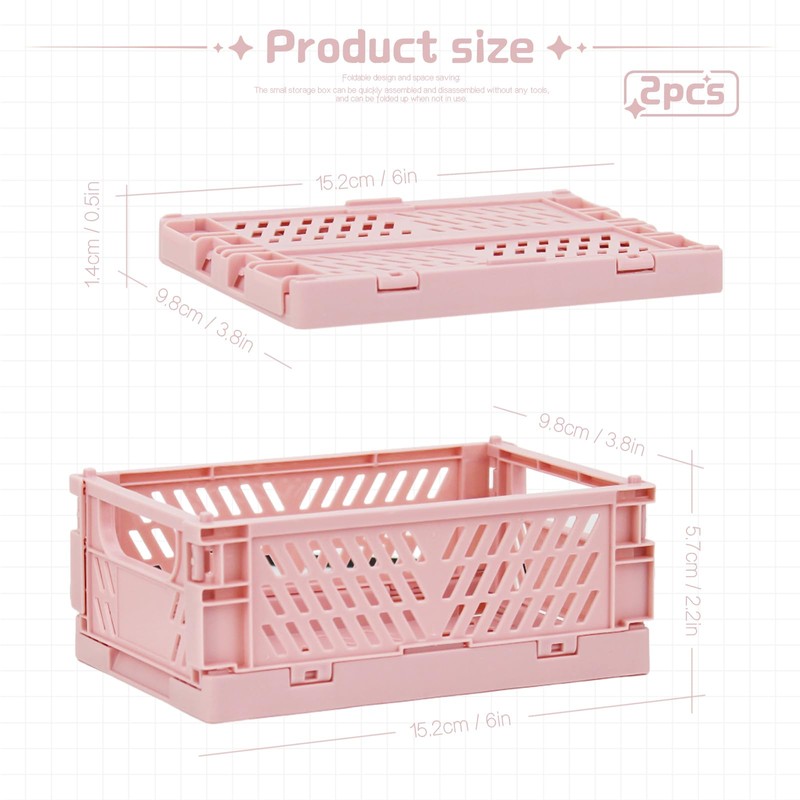 • Size: The unfolded size of this mini creats foldable plastic baskets is 5.9 * 3.9 * 2.2 inches, occupying a small space and used for organizing small items