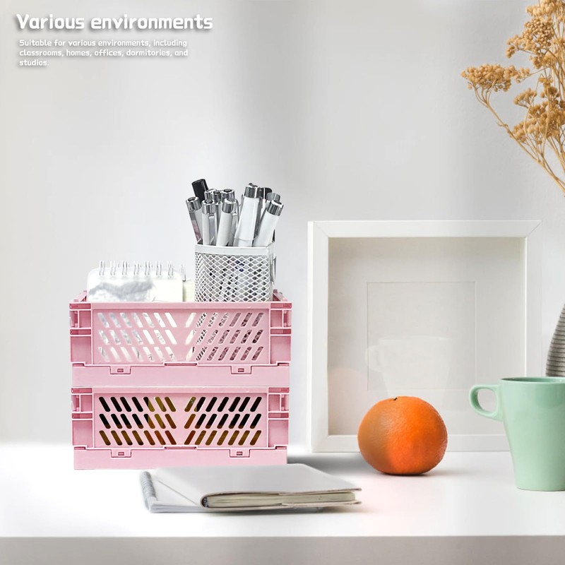 WERJOURU 2-Pack Mini Creats Foldable Plastic Baskets ,Collapsible Storage Box for Organizing and Storag,Home Kitchen Bedroom Bathroom Office Tool (Blue, 5.9x3.8x2.2'') (PINK)