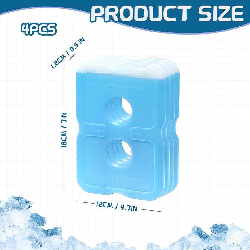 - Product: This ice packs for lunch boxes measures 7 x 4.8 x 0.5 inches and comes in a set of 4 ultra-thin, reusable items for refrigeration and preservation
