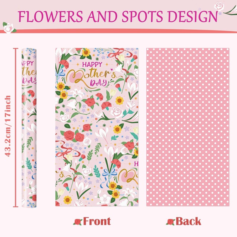 - MOTHER'S DAY GIFT WRAP:Our Mother's Day wrapping paper is designed with colorful floral patterns and "Happy Mother's Day" text. Add a touch of love and surprise to your gift for mom.