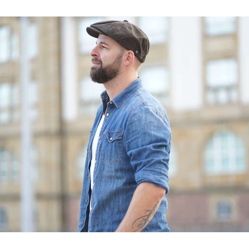 WEROR WEROR-322.1 Men's Peaked Cap - Flat Cap Men's Hat with Peak - Herringbone - Hat with Cotton Lining - Autumn/Winter, brown