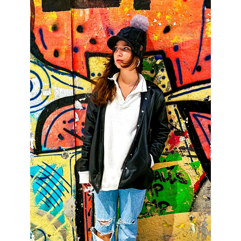 - UNIQUE DESIGN Combining knitting pattern, faux fur pom and shield, this hat combines multiple style elements to create a unique design.