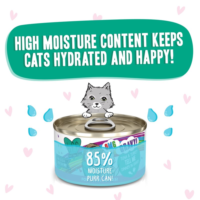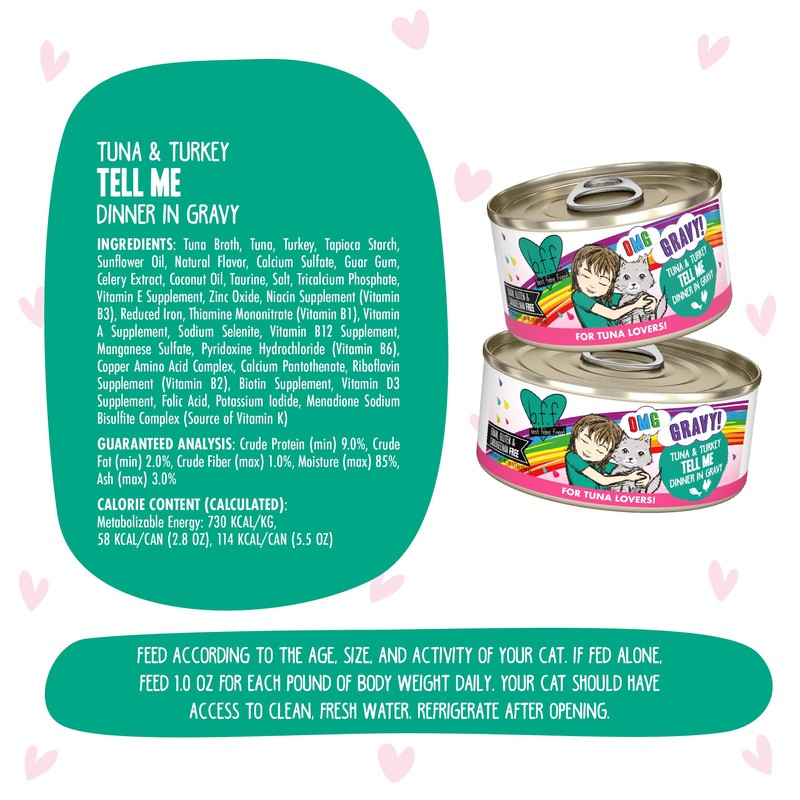 Weruva B.F.F. OMG - Best Feline Friend Oh My Gravy!, Tuna & Turkey Tell Me with Tuna & Turkey, 2.8oz Can (Pack of 12)