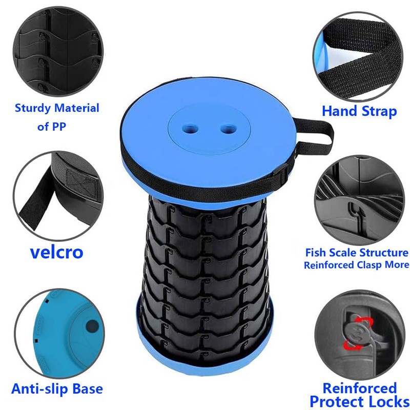 - 【Self-Open Prevention】When this collapsible stool is closed, the snap joints designed on the caps function to prevent the stool from opening by itself. This makes it more convenient and easier to carry along for outdoor activities. The non-slip base ensures that this collapsible stool will provide stability and offer a safe and comfortable sitting experience