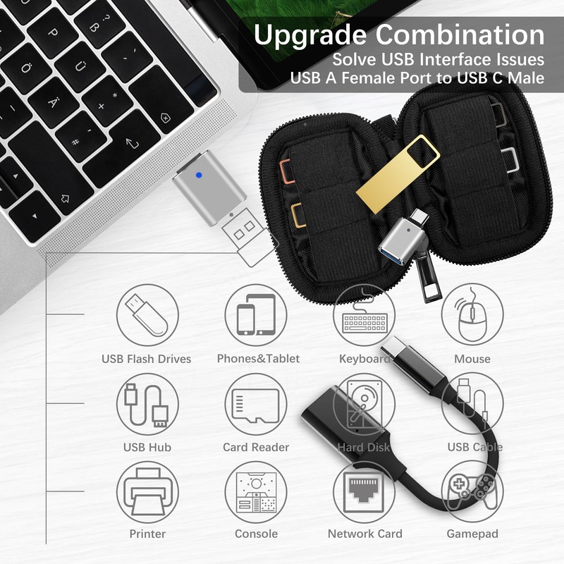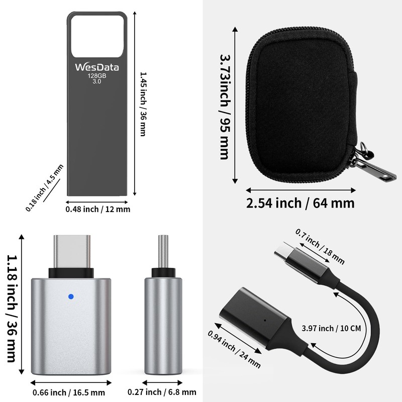- VERSATILE SET: Complete 4-Pack for All Your Storage Needs. Includes 4 high-speed 128GB USB 3.0 flash drives, 3 versatile USB C adapters, and a soft, durable carrying case—good for organizing files across laptops, phones, and tablets. The compact case keeps everything tidy and portable, ideal for students, professionals, and on-the-go users
