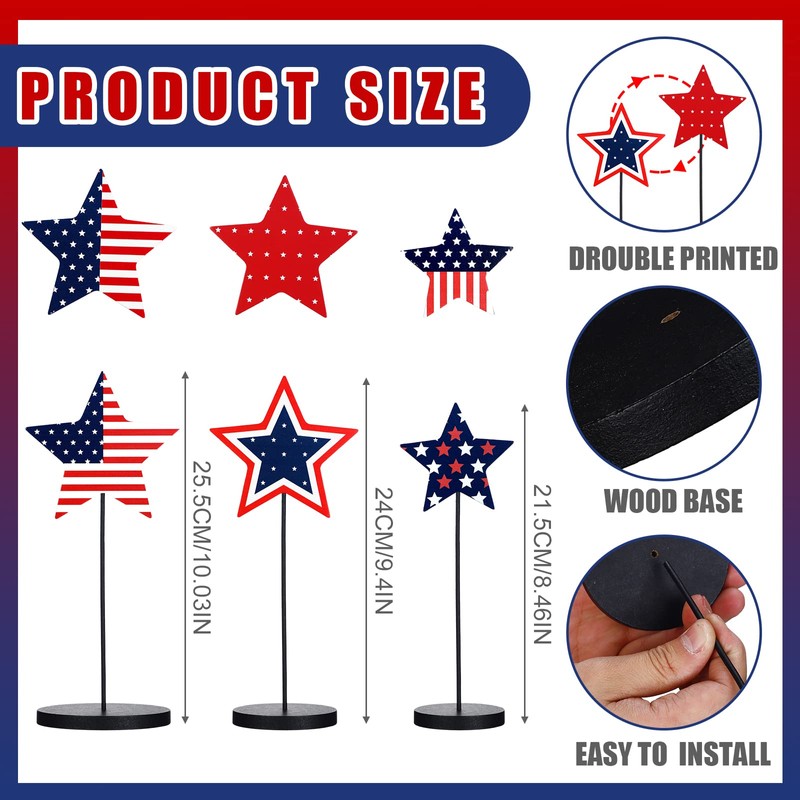 - Nice Combinations: you will get 6 pieces of wooden star patriotic table decorations, which have bases in different lengths, thus they will form a picturesque disorder, and add more charm to your home decorations