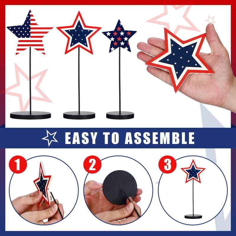 - Built to Long Last: our star 4th of July decorations for home are made of quality wood material with well printings, sturdy, reliable and long lasting, not easy to deform, break or fade, they come with a smooth surface and exquisite appearance, can support repeated applications in good condition for a long time
