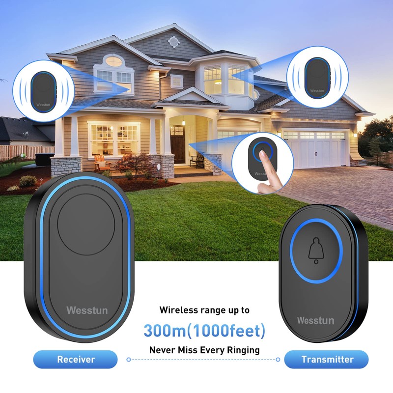 - [Easy to Install & Configure]: This new doorbell has been configured, simply plug the doorbell receiver into the socket, and attach the push button transmitter to the exterior wall by using the double-sided tape. After that you may start to enjoy this lovely doorbell. The doorbell system is expandable to configure with more receivers or transmitters, each doorbell receiver can be controlled from additional push button transmitters.