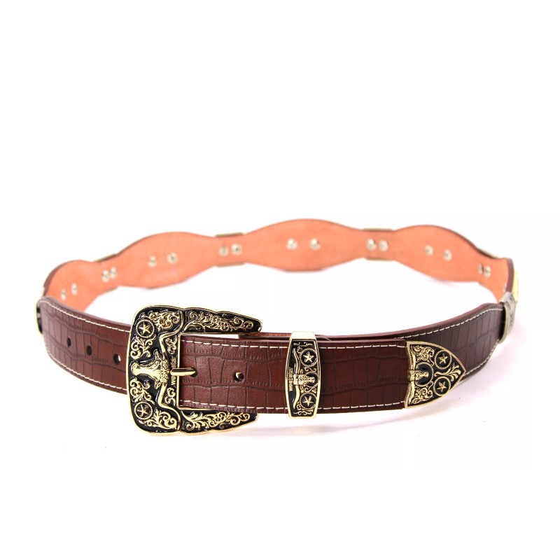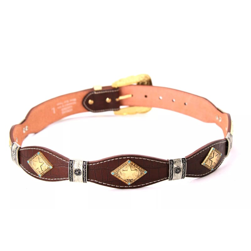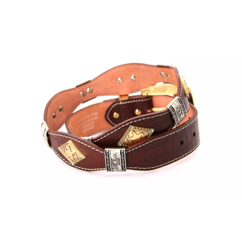 West Belt Coffee Silver Star Gold Concho Crocodile Pattern for Pants Size 30