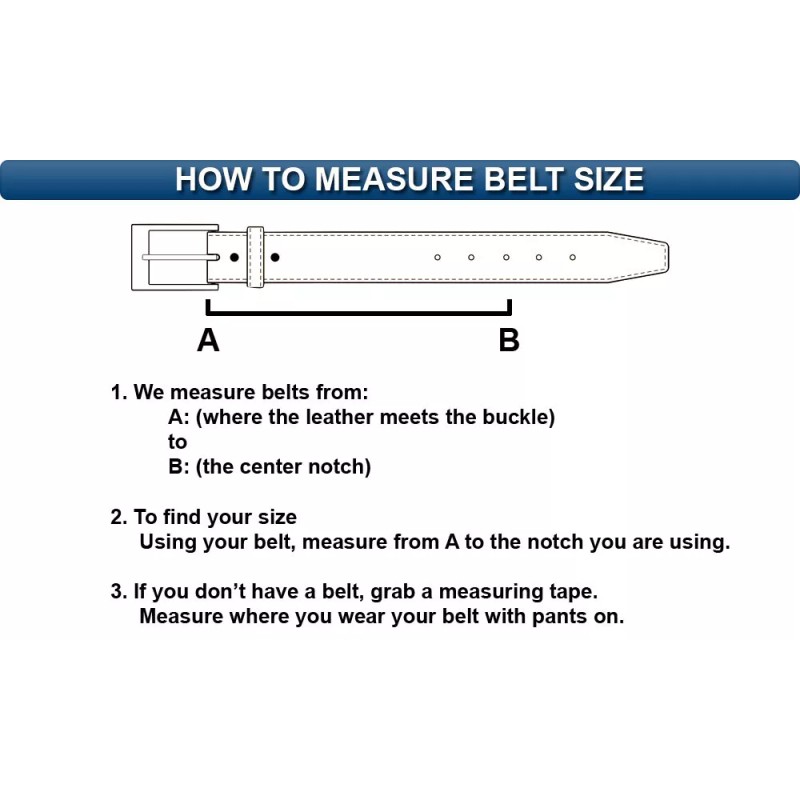 【SIZE TO BUY】- As the picture show, please measure your existing belt from leather fold to the hole you daily uses. This number is your belt size and waist. If it is 36'', you need a belt L-36''. You will use the middle hole of this belt. However, if you decide to buy a belt directly according to your pants size, apply the +2 rule. For example, you wear 30 size pants, you may get a M-32'' belt. We will attach a hole punch, so you can cut extra length and punch a hole as needed.