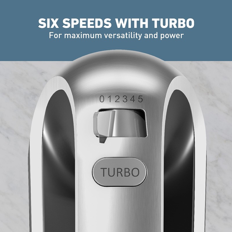- 6 SPEED HAND MIXER: Six speeds allow you to whisk, beat, mix and pulse any of your favorite recipes