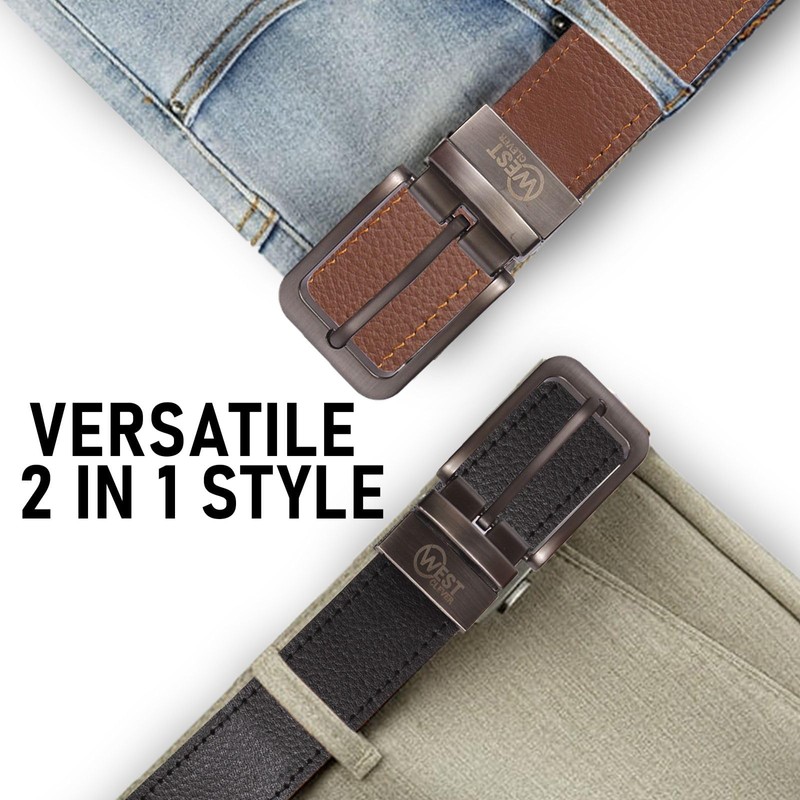 - Reversible leather belt for men; Enjoy the comfort of two belts in one with our innovative 2-in-1 design that allows you to switch between the two colors black and brown with just a small twist.