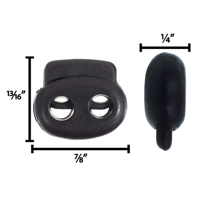 - AVAILABILITY: Available in black, and in pack size options of 6-packs, 10-packs, 25-packs, 50-packs, 100-packs, 500-packs, and 1000-packs, these cord locks are sure to meet all your project needs and ensure you bulk savings. Each cord lock can hold cord with a 1/8-Inch (3mm) diameter or smaller. West Coast Paracord also has a large variety of cord locks in other shapes such as triangle, circle, bowling pin, bean, dual slot, octagon, cow, turtle, cube, barrel, slider, bear, wheel, and much more!
