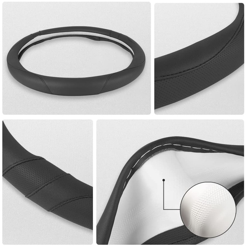 - 【HIGH QUALITY MATERIAL】This steering wheel cover is made of high quality microfiber leather, which is soft texture, comfortable, eco-friendly, wear-resistant and durable.