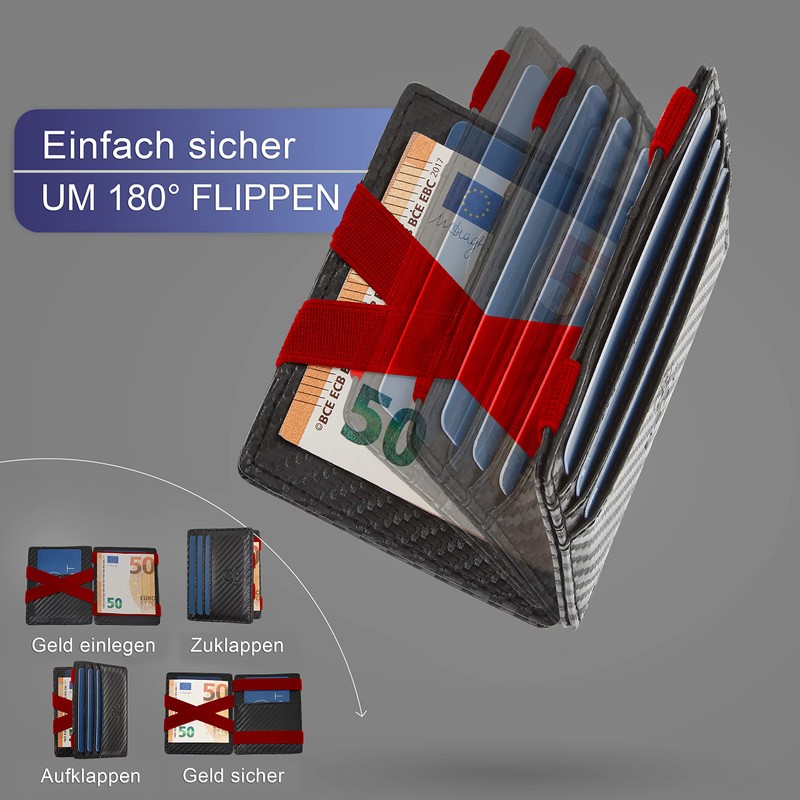 - Extra wide money bands – no wearing out and stable hold thanks to the extra wide money bands. Now your money is stored even safer in your wallet. The longevity of your gadget wallet is thus optimally secured