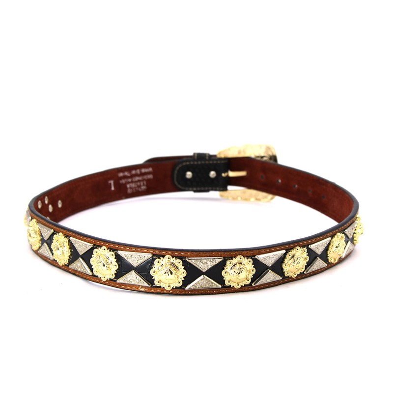 West Star Texas Western Leather Belt Gold Berry with Triangular Silver Concho Decoration 2601B HORSE BK WEAVE XXL